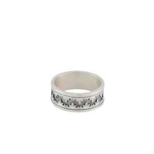 The Silver Western Ring is a classic band ring with an Americana inspired design. The ring is made from 925 Sterling Silver, and is hallmarked verifying its quality.