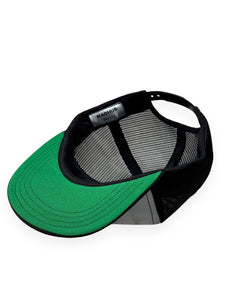 - The Black and white hat has the white crown with black details and a classic green underbill detail.